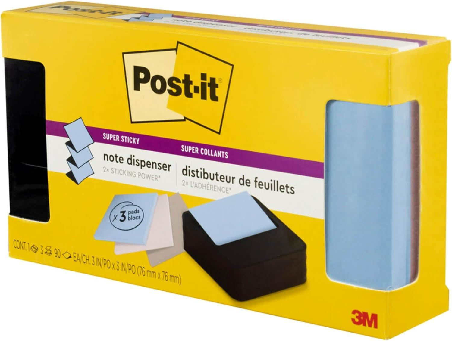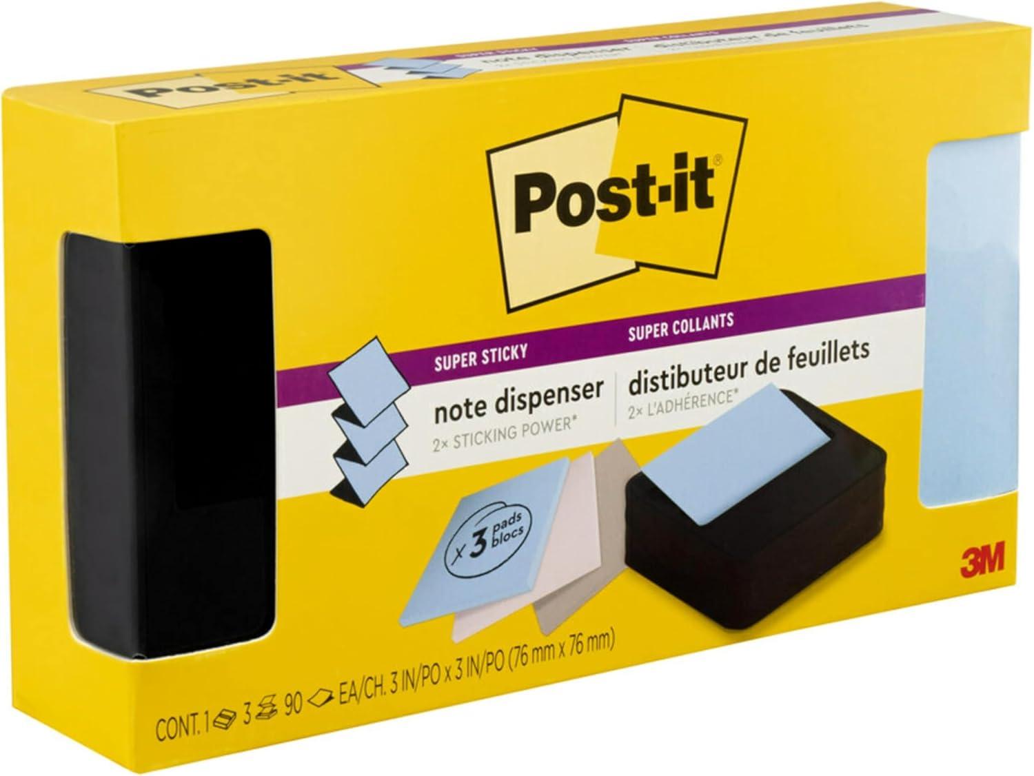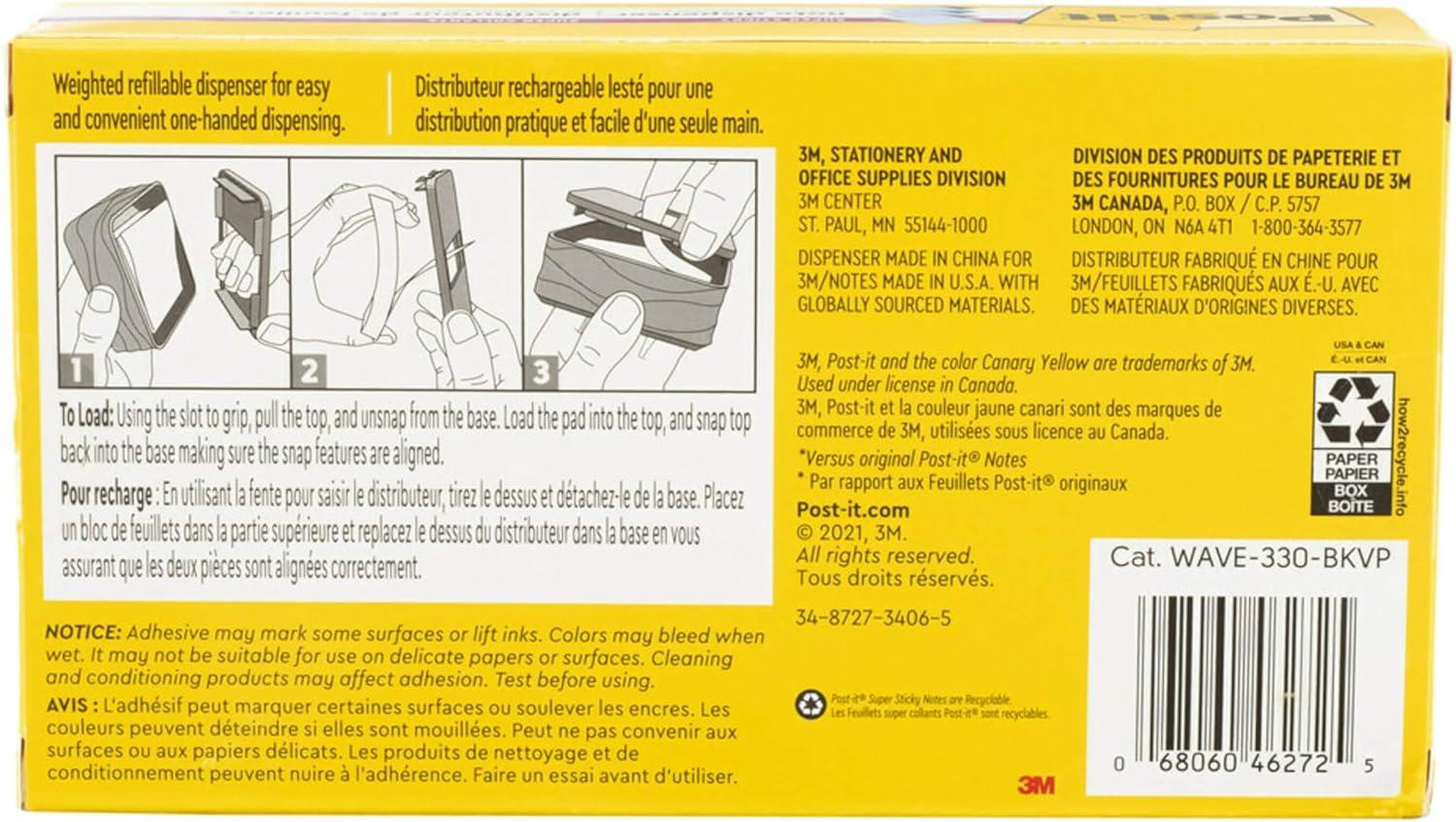 Post-it Note Dispenser Modern Black Pack Includes Dispenser and 3 Super Sticky Pop-up Sticky Notes Pads 2X The Sticking Power (WAVE-330-BKVP)(3.6″ x 25″ (Pack of 6))