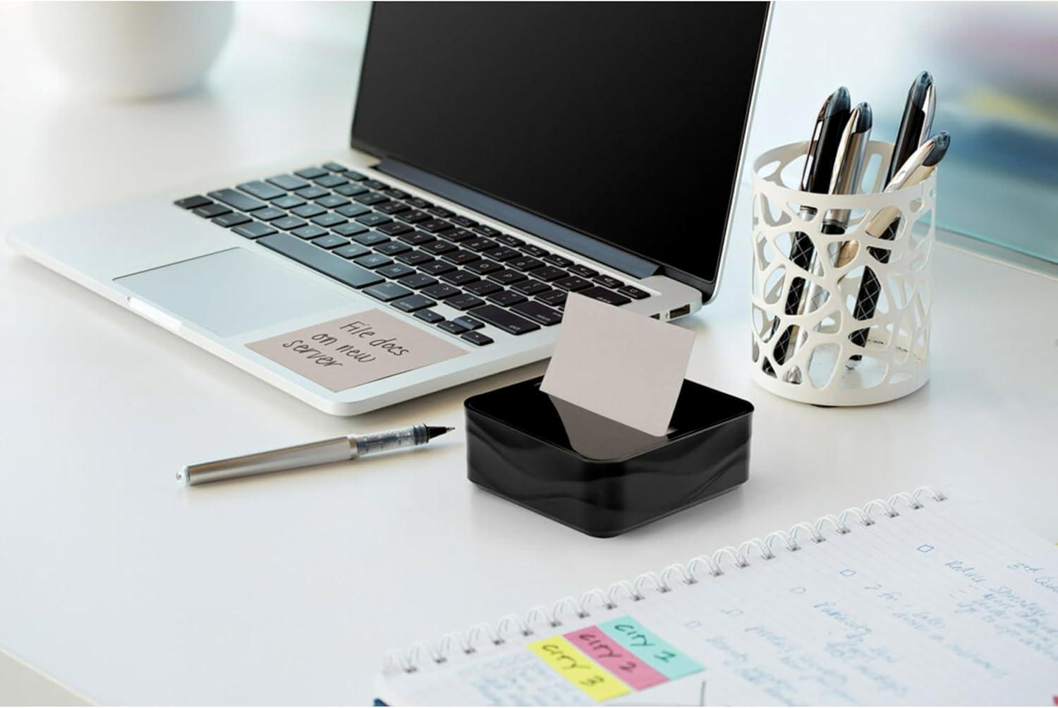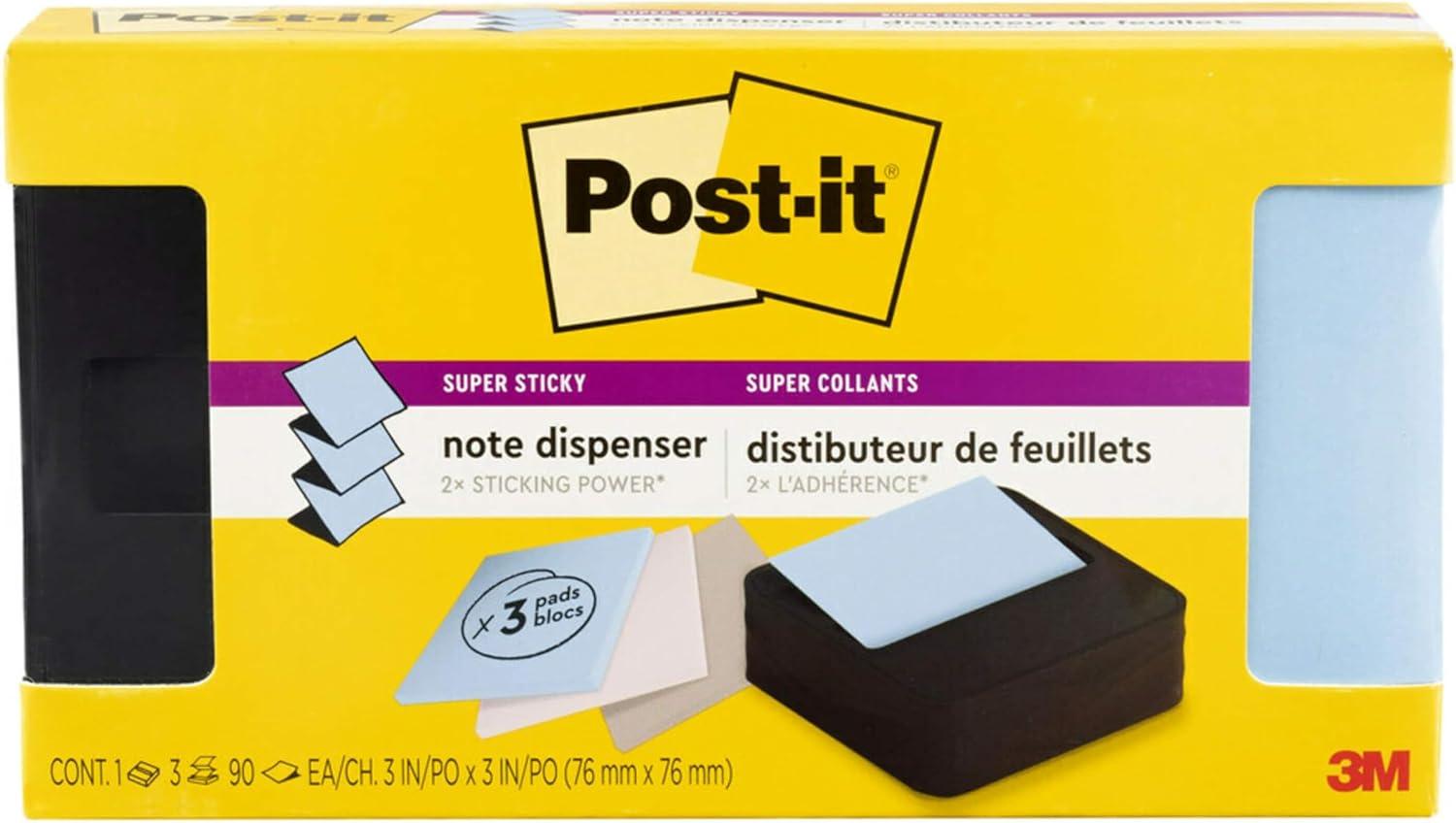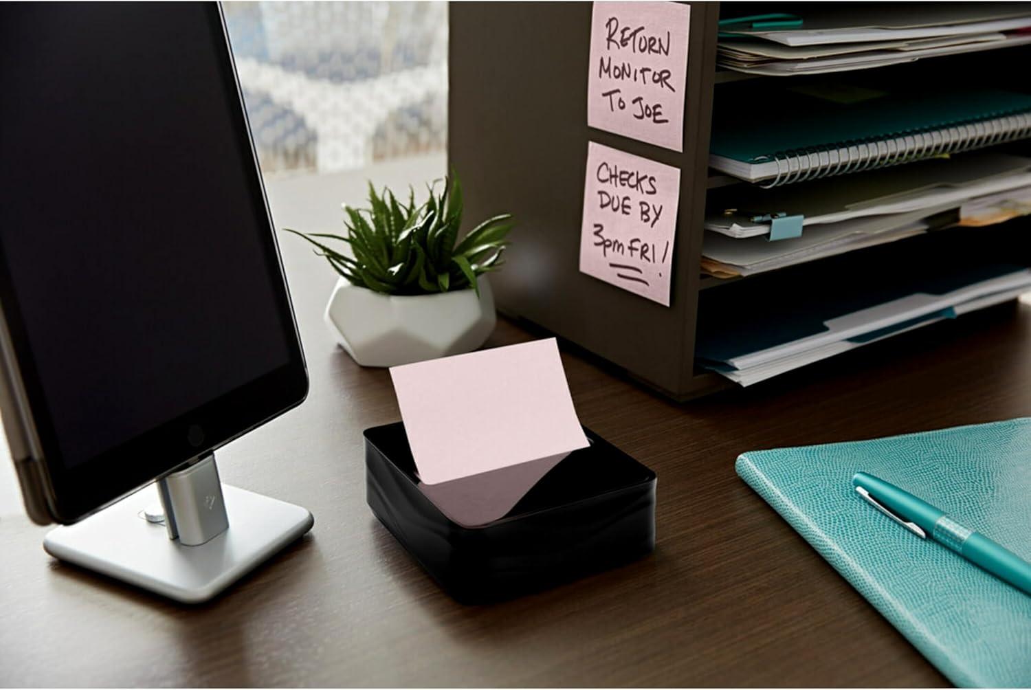 Post-it Note Dispenser Modern Black Pack Includes Dispenser and 3 Super Sticky Pop-up Sticky Notes Pads 2X The Sticking Power (WAVE-330-BKVP)(3.6″ x 25″ (Pack of 6))