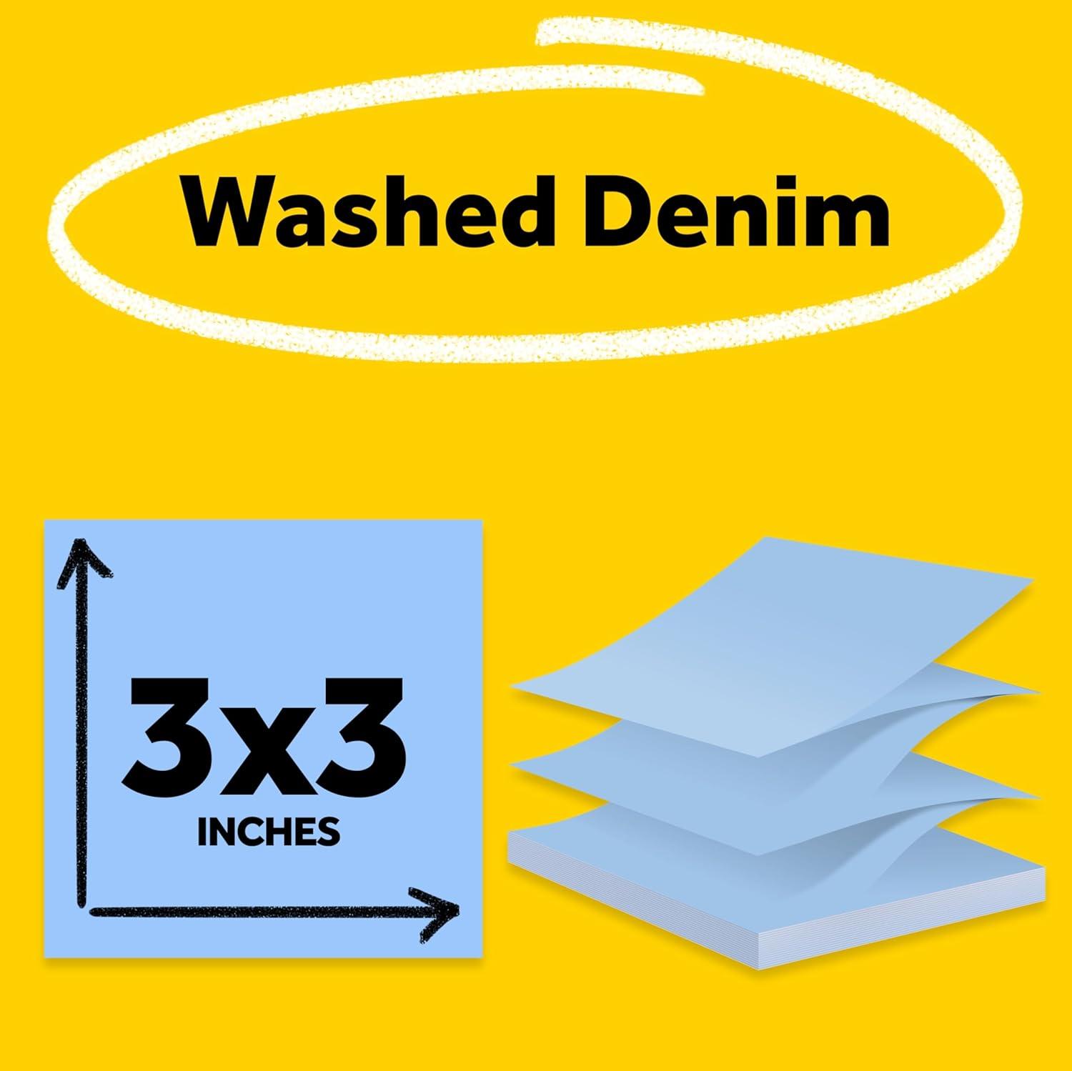Post-it Super Sticky Notes-to-go Pop-Up Notes, 3 in. x 3 in., 6 Dispensers with 540 Total Pastel Sticky Notes in Pink Salt Color, Great for School, Office, Classroom, or Home(Washed Denim)